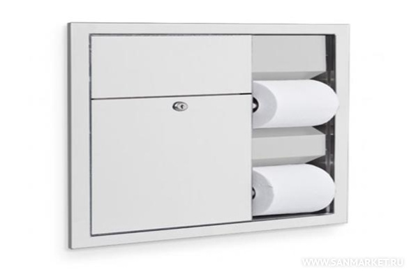 Встраиваемый шкаф Nofer с 2мя держателями туалетной бумаги и мусорным баком 12035.S есть в наличии на наших складах. Вы можете купить модель Встраиваемый шкаф Nofer с 2мя держателями туалетной бумаги и мусорным баком 12035.S от производителя с бесплатной доставкой при цене заказа от 25000 рублей. В интернет-магазине www.sanmarket.ru всегда низкие цены на Держатели бренда . У нас выгодные условия обмена товара и широкие возможности по безналичной оплате.