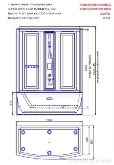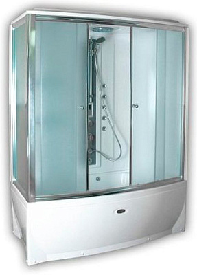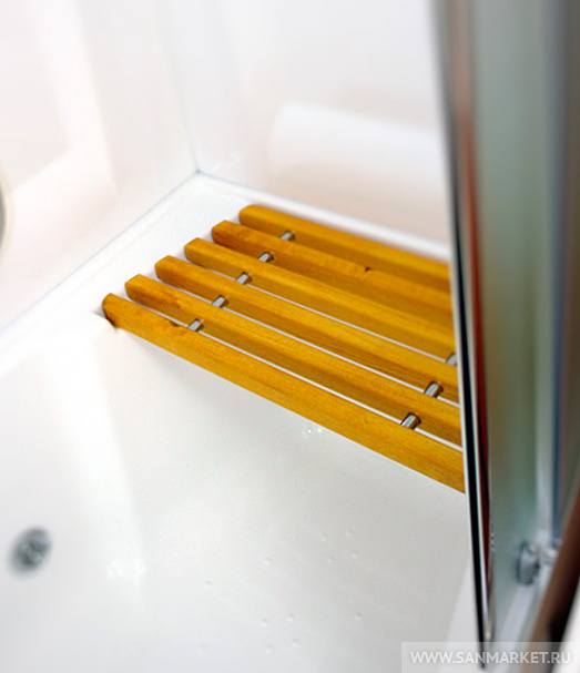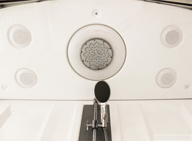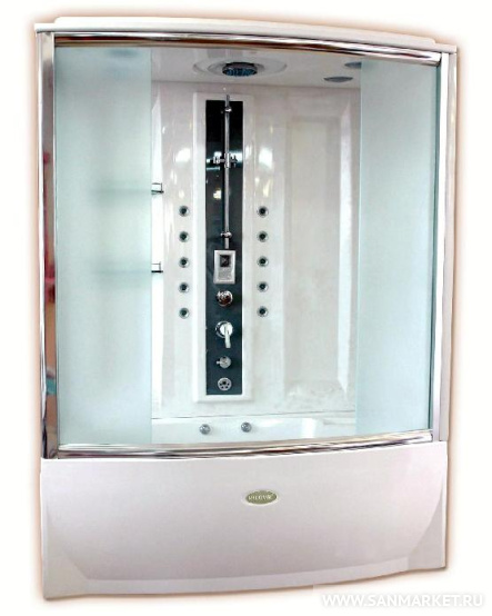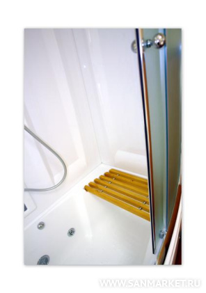 Душевой бокс Элис оборудован горизонтальным гидромассажем (10форсунок) и вертикальным душем. Форсунки расположены как в верхнейчасти бокса, так и в чаше ванны. С помощью регулятора воздуха можноконтролировать напор струи в форсунках и по желанию сделатьгидромассаж мягким или же, наоборот, интенсивным. Встроеннаяфункция турецкой бани помогает улучшить состояние кожи и оказываетблагоприятное воздействие на организм в целом. Также боксоборудован удобным деревянным сидением, таймером и полочками.