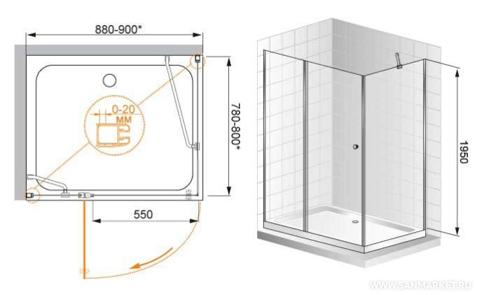Душевой уголок Cezares Elena AH1 90/80 P Cr R