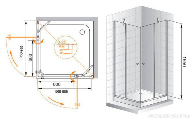 Обратите внимание, данная модель имеет регулируемый профиль,(96-98.5)х(96-98.5)х197 см, который позволит идеально подогнатьизделие под размеры в вашей ванной.