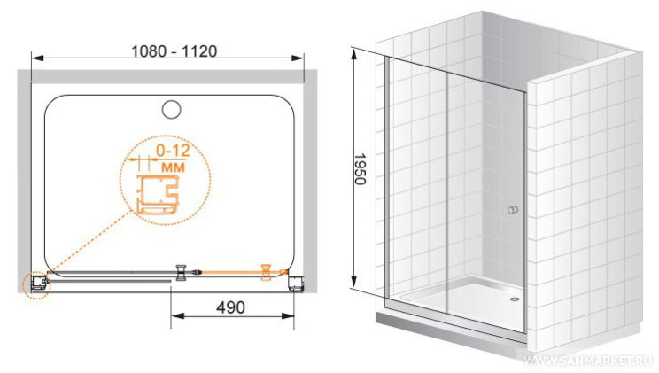 Обратите внимание, данная модель имеет регулируемый профиль,(108-112)х195 см, который позволит идеальноподогнать изделие под размеры в вашей ванной.