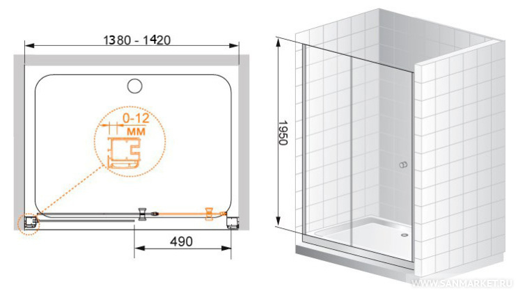Обратите внимание, данная модель имеет регулируемый профиль,(138-142)х195 см, который позволит идеальноподогнать изделие под размеры в вашей ванной.