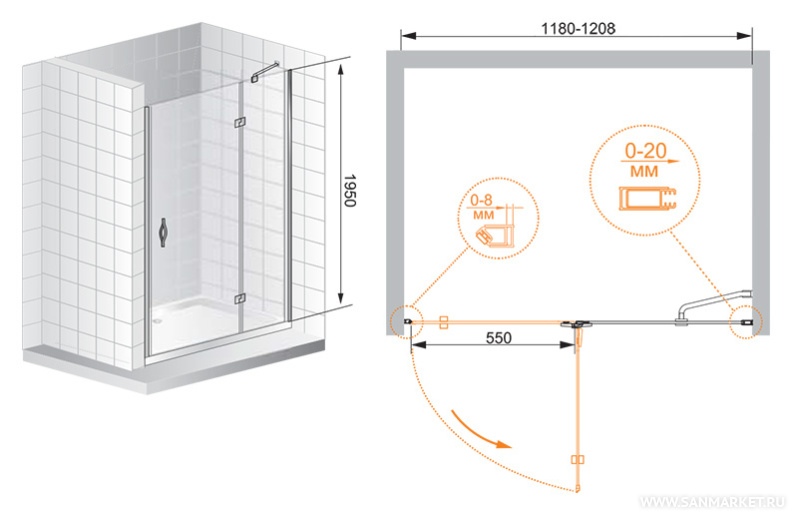 Обратите внимание, данная модель имеет регулируемый профиль,(118-120,8)x195 см, который позволит идеально подогнать изделиепод размеры в вашей ванной.