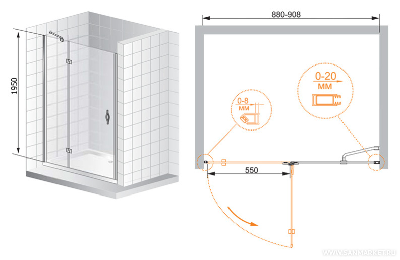 Обратите внимание, данная модель имеет регулируемый профиль,(88-90,8)х195 см, который позволит идеально подогнать изделиепод размеры в вашей ванной.