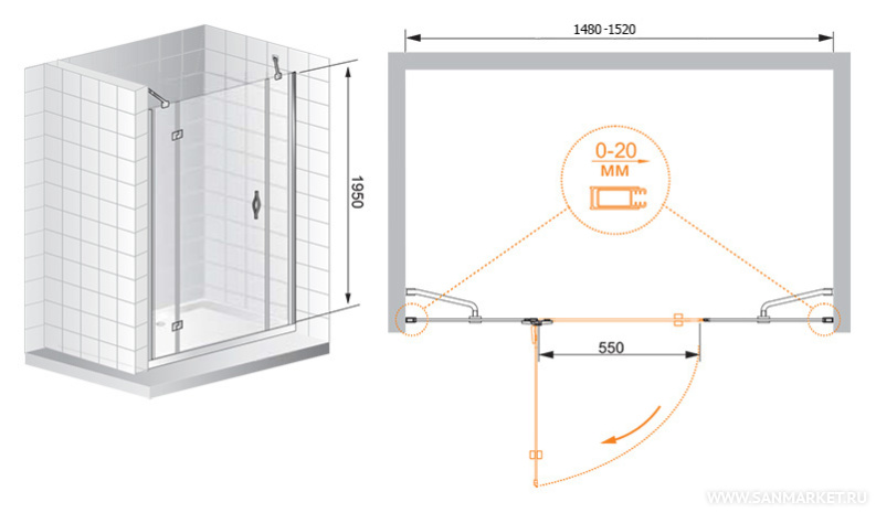 Обратите внимание, данная модель имеет регулируемый профиль,(148-152)х195 см, который позволит идеально подогнать изделиепод размеры в вашей ванной.