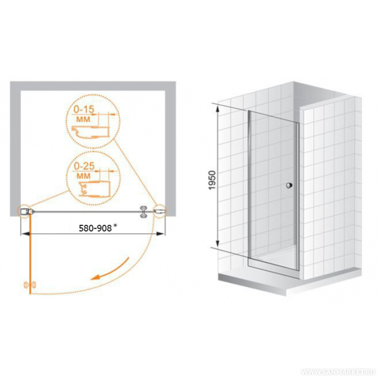 Обратите внимание, данная модель имеет регулируемый профиль,(78-80,8)х195 см, который позволит идеальноподогнать изделие под размеры в вашей ванной.