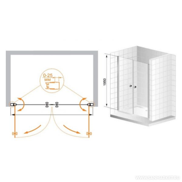 душевая дверь в нишу