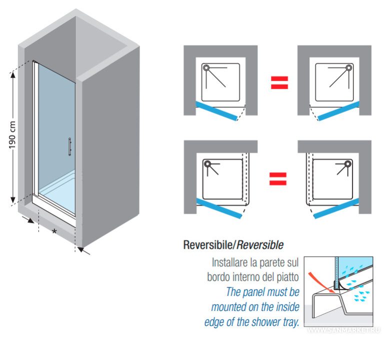 на поддон, в нишу, напольный
