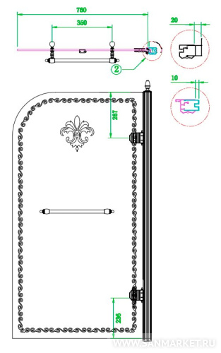 Шторка для ванны Cezares RETRO-A-V-1-80/145-CP-Cr-R