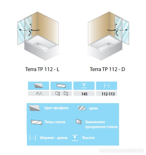 Шторка на ванну Kolpa San Terra TP 112 L/D есть в наличии на наших складах. Вы можете купить модель Шторка на ванну Kolpa San Terra TP 112 L/D от производителя с бесплатной доставкой при цене заказа от 25000 рублей. В интернет-магазине www.sanmarket.ru всегда низкие цены на Шторки на ванну бренда . У нас выгодные условия обмена товара и широкие возможности по безналичной оплате.
