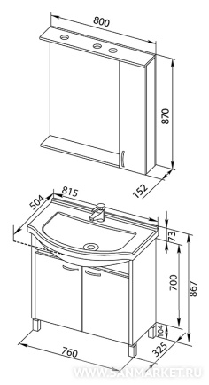 Мебельный гарнитур для ванной комнаты Донна включает тот необходимый минимум, без которого трудно обойтись в повседневном быту. Напольная тумба с раковиной-столешницей и двумя отделениями с распашными дверцами позволит с удобством разместить необходимые бытовые средства и банные принадлежности. Навесное зеркало оборудовано встроенной подсветкой, а также выключателем и розеткой для бытовых приборов. Боковой шкафчик с компактными полками предназначен для мелочей, которые всегда должны быть под рукой.