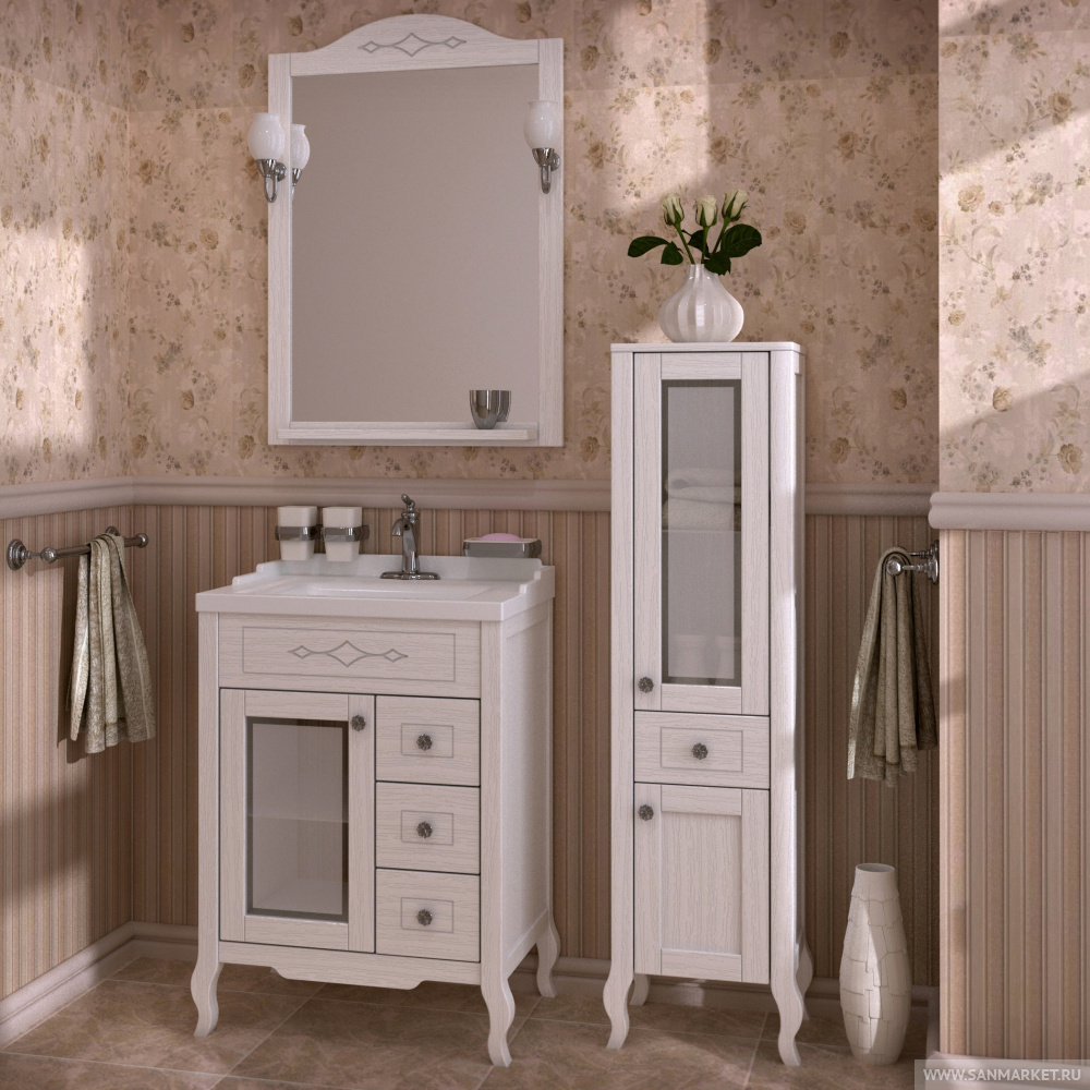 Комплект мебели для ванной Флоренция - изысканный итальянский дизайн, безупречный стиль и качественные материалы, все это делает комплект мебели Флоренция воплощением красоты и качества. Мы выбираем натуральный массив дерева, потому что не один современный материал не заменит экологичность и изысканность натурального дерева. Мебель из массива дерева - это классика, материал, который будет уникальным всегда.