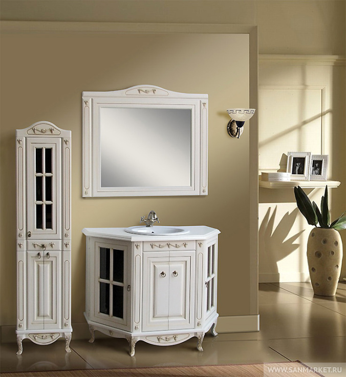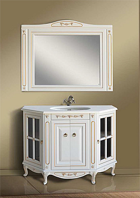 Время проходит, но ценность классического стиля в интерьере и не думает сдавать позиции. Простые формы мебельного комплекта Верона 120 в сочетании с искусным декором и оригинальной покраской, имитирующей натуральное дерево по праву делают его украшением интерьера ванной комнаты. Большое зеркало не только удобно, но и зрительно делает комнату более светлой и просторной. Тумба под раковину нестандартной трапецевидной планировки позволяет хранить внутри множество ванных принадлежностей и при этом существенно экономит пространство. Тонированные витражные стекла, стильная фурнитура, столешница — облик комплекта мебели для ванной комнаты Верона 120 scuro аристократичен и изыскан, такая мебель нравится с первого взгляда и на долгие годы!