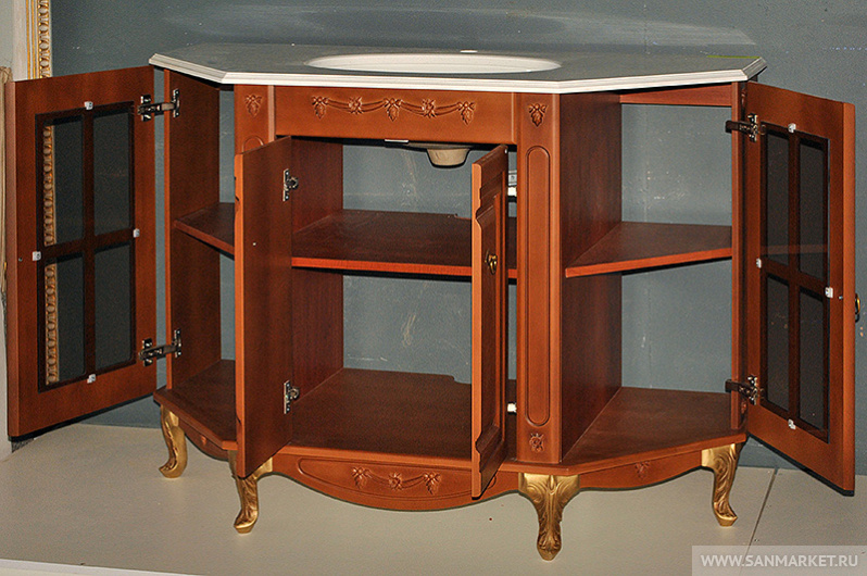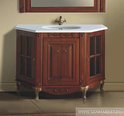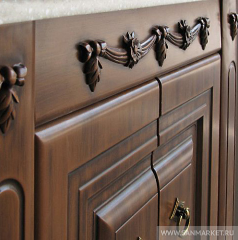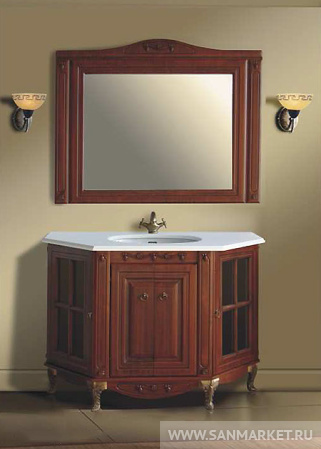 Время проходит, но ценность классического стиля в интерьере и не думает сдавать позиции. Простые формы мебельного комплекта Верона 120 в сочетании с искусным декором и оригинальной покраской, имитирующей натуральное дерево по праву делают его украшением интерьера ванной комнаты. Большое зеркало не только удобно, но и зрительно делает комнату более светлой и просторной. Тумба под раковину нестандартной трапецевидной планировки позволяет хранить внутри множество ванных принадлежностей и при этом существенно экономит пространство. Тонированные витражные стекла, стильная фурнитура, столешница — облик комплекта мебели для ванной комнаты Верона 120 scuro аристократичен и изыскан, такая мебель нравится с первого взгляда и на долгие годы!