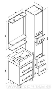Вся мебель из коллекции Чили имеет металлические хромированные ручки и металлические ножки. Подсветка зеркала расположена на верхней планке. Тумба под раковину снабжена двумя выдвижными ящиками, где могут поместиться все нужные вещи. Компактные размеры шкафа-пенала, позволяют ему разместиться в помещении даже небольшой ванной комнаты.