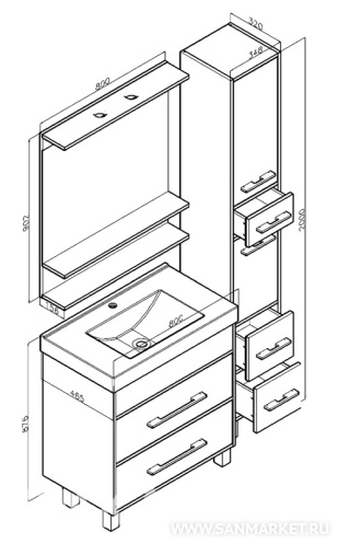 Вся мебель из коллекции Чили имеет металлические хромированные ручки и металлические ножки. Подсветка зеркала расположена на верхней планке. Тумба под раковину снабжена двумя выдвижными ящиками, где могут поместиться все нужные вещи. Компактные размеры шкафа-пенала, позволяют ему разместиться в помещении даже небольшой ванной комнаты.