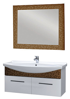 Мебель для ванной серии Ornament - идеальное решение для оснащения современных и элегантных ванных комнат. Она сочетает в себе высокое качество и приемлемую цену. Подвесная тумба и зеркало дополнены декоративным орнаментом, что производит впечатление принадлежности ее к элитному классу.