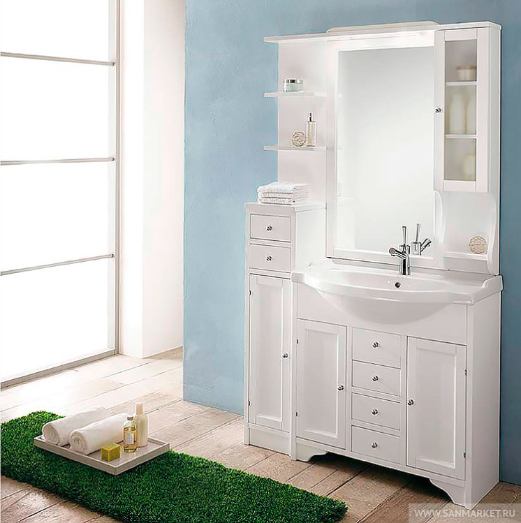 Мебель для ванной Eban Eleonora Modular 107 R белая есть в наличии на наших складах. Вы можете купить модель Мебель для ванной Eban Eleonora Modular 107 R белая от производителя с бесплатной доставкой при цене заказа от 25000 рублей. В интернет-магазине www.sanmarket.ru всегда низкие цены на Мебель для ванной бренда . У нас выгодные условия обмена товара и широкие возможности по безналичной оплате.