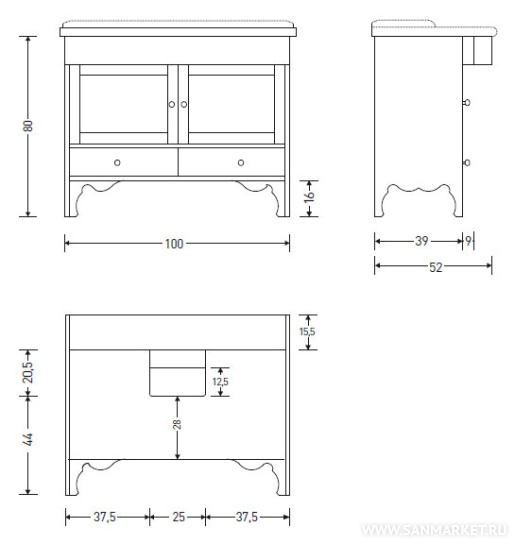 с ящиками, с полками, с дверками