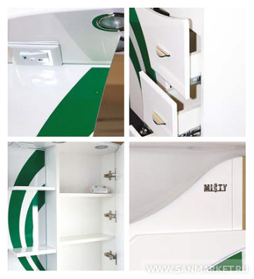 зеркало с полочкой, зеркало с розеткой, зеркало с подсветкой, комплект опорных ножек, крепления