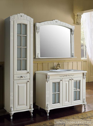 Фигурные элементы декора подчеркивают индивидуальность данного комплекта, а классический фасад придает мебели итальянский характер. «Александрия» прекрасно впишется в ванную комнату и придаст ей тонкий изысканный стиль. Все элементы выполнены из влагостойких материалов, поэтому мебель не только будет радовать глаз, но и служить долгие годы.