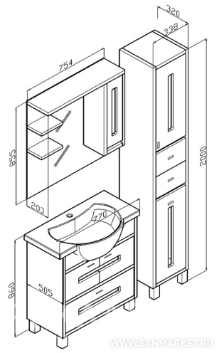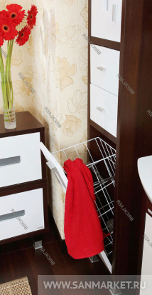 Пенал Бали состоит из трех функциональных частей. Внутри верхней части есть полочка. В центральной части находятся два выдвижных ящика на металлических направляющих. Внизу расположена бельевая корзина. Так же пенал снабжен специальными навесами на задней стенке для крепления его к стене.