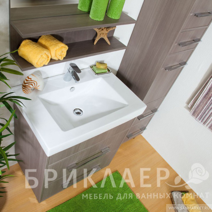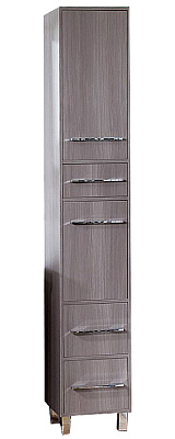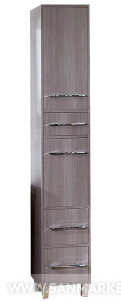 Вся мебель из коллекции Чили имеет металлические хромированные ручки и металлические ножки. Компактные размеры шкафа-пенала, позволяют ему разместиться в помещении даже небольшой ванной комнаты. Пенал Чили имеет пять отделений. Верхняя ниша, в которой съемная полка закрывается дверцей. Далее располагается выдвижной узкий ящик. Средняя секция, в которой съемная полка закрывается дверцей. Внизу