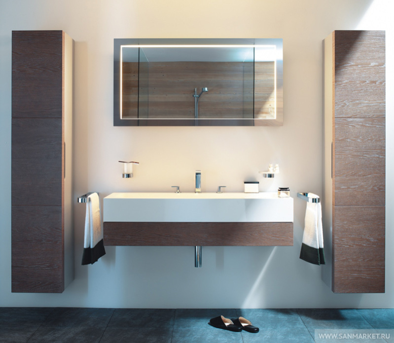 Серия EDITION 300 привлекает своим независимымхарактером и строгой геометрией. Благодаря этому возникаютнеожиданные возможности вариаций, которые элегантно подчеркиваютархитектуру ванной комнаты. Таким способом серия EDITION 300развивает присущее ей очарование.