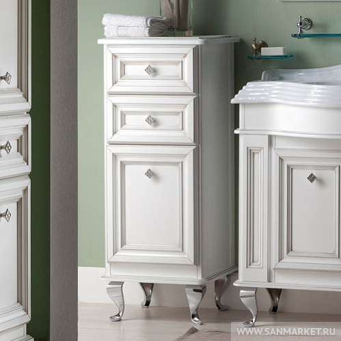 Коллекция FRESCO – это попытка заглянуть в средневековую Италию. Итальянский классицизм – непреходящий стиль, который постоянно находит себе новых поклонников. Опираясь на античное наследие, в нем всегда живет гармония. Симметрия форм и элегантность линий мебели FRESCO никого не оставят равнодушным. BIANCO Alluminio (арт. В 016) - тонировка белая с применением многослойного патинирования. Цвет патины - орех, серебро. Финишный блеск "шелковисто матовый".