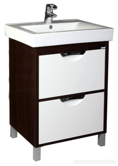 Тумба с раковиной Aquanet Гретта 60 2 ящика венге