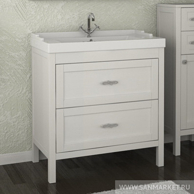 Тумба с раковиной ASB-Mebel Римини 80 белая патина серебро