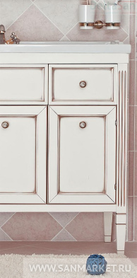 Коллекция "Альбион" - мебель в английском стиле. Богатая отделка и основательность форм сочетается с теплотой натурального дерева. Выбирая коллекцию "Альбион", Вы подчёркиваете свой безупречный вкус и значительность. Выполненная из массива ценных пород дерева, она полностью подготовлена к условиям повышенной влажности. BIANCO Light Vintage (арт. В-003) - тонировка белая с легким патинированием. Для придания эффекта старины используется завальцовка углов и протирка граней до дерева. Цвет патины - орех. Финишный блеск "шелковисто матовый".