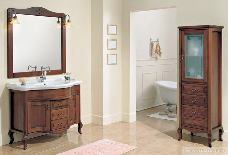 Все модели мебели Cezares изготавливаются из массива твердолиственных пород ореха. Каждое изделие имеет многослойное износоустойчивое и влагозащищенное лакокрасочное покрытие. Тумбы комплектуются керамическими консольными раковинами производства итальянских фабрик. В комплекты мебели входят, подобранные по дизайну зеркала и светильники, которые можно приобретать по необходимости и желанию. Серия Andama относится к одному из направлений мебели Cezares Classico – это в первую очередь изысканный классический стиль и теплота натурального дерева, в сочетании с неповторимостью созданного природой рисунка. При этом все модели отличаются продуманной функциональностью и эргономикой.