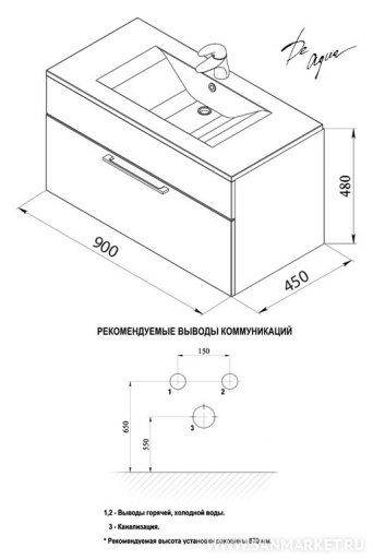 Тумба с раковиной De Aqua Кубика 90