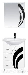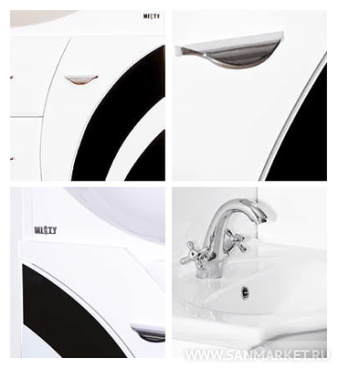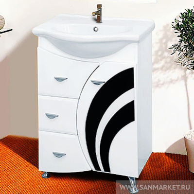 Тумба с раковиной Misty Каролина 60 3 ящика R черное стекло