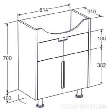 Тумба с раковиной Santek Рандеву 65 есть в наличии на наших складах. Вы можете купить модель Тумба с раковиной Santek Рандеву 65 от производителя с бесплатной доставкой при цене заказа от 25000 рублей. В интернет-магазине www.sanmarket.ru всегда низкие цены на Тумбы с раковиной бренда . У нас выгодные условия обмена товара и широкие возможности по безналичной оплате.
