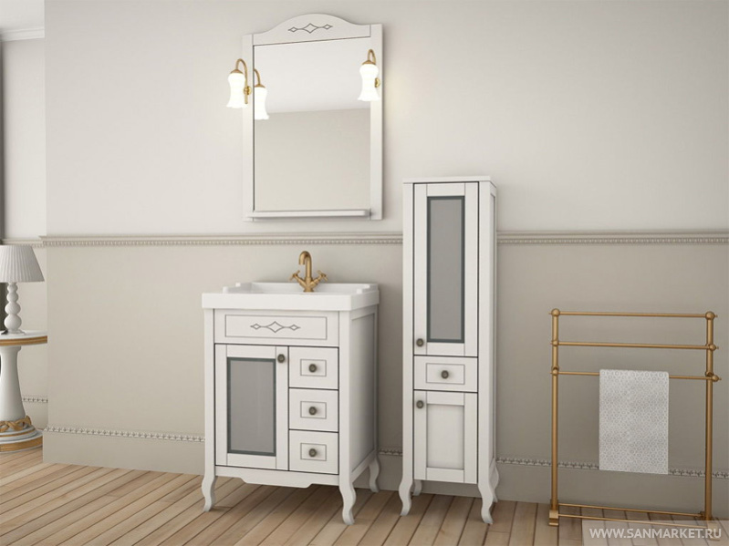 Зеркало ASB-Mebel Флоренция Квадро 60 белое патина серебро со светильниками
