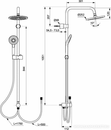 Душевая система для установки с настенным смесителем