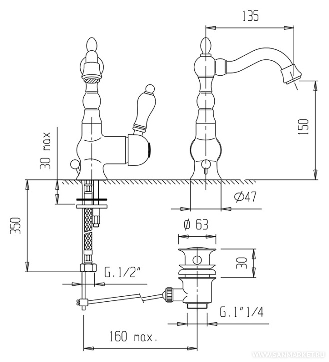 аэратор, крепления, сливной гарнитур, гибкая подводка