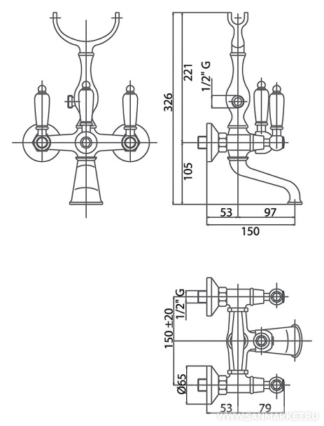 для ванны с душем, набор: смеситель и душевой гарнитур