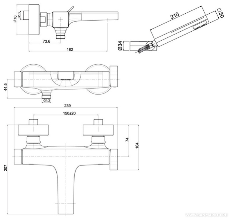для ванны с душем, набор: смеситель и душевой гарнитур