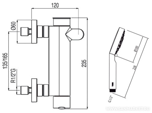 для ванны с душем, набор: смеситель и душевой гарнитур