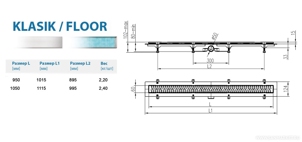 Водоотводящий желоб ALPEN Klasic/Floor ALP-1050/50KN с рамкой есть в наличии на наших складах. Вы можете купить модель Водоотводящий желоб ALPEN Klasic/Floor ALP-1050/50KN с рамкой от производителя с бесплатной доставкой при цене заказа от 25000 рублей. В интернет-магазине www.sanmarket.ru всегда низкие цены на Водоотводящие желоба бренда . У нас выгодные условия обмена товара и широкие возможности по безналичной оплате.