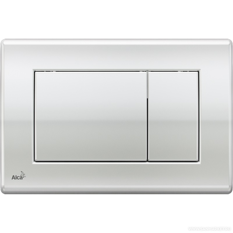 Клавиша смыва для унитаза. Двойной смыв, материал - хромированный пластик, подходит ко всем системам инсталляции Alcaplast. Кнопка инсталляции ALCA для системы инсталляции с высоким качеством обработки удовлетворяют самым современным тенденциям. Среди огромного выбора клавиш управления любой человек сумеет отыскать собственную клавишу управления ALCA, которая сделает интерьер ванной комнатой изящным, сохранив при всем этом собственную функциональность.