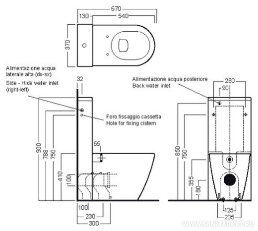 приставной (бачок в стене)