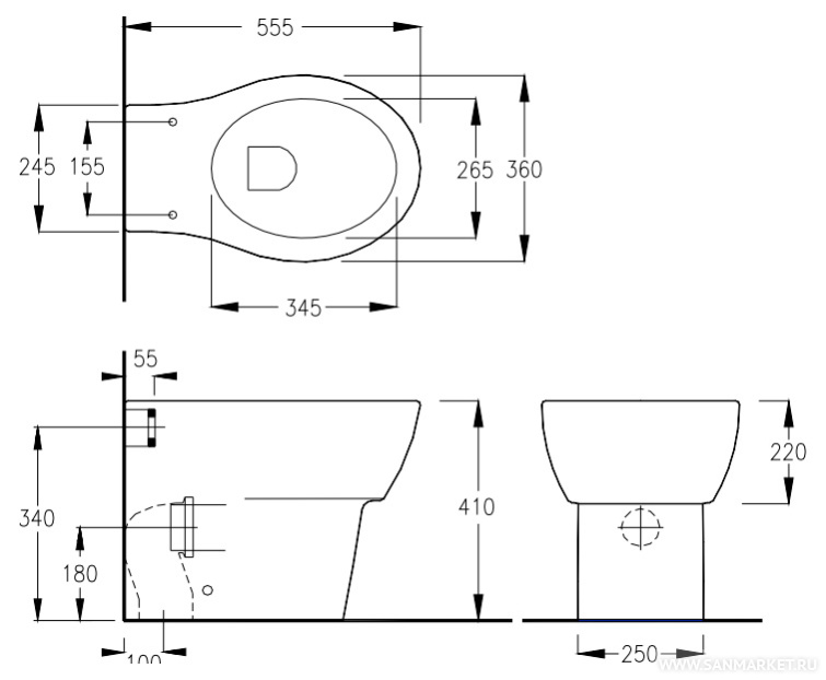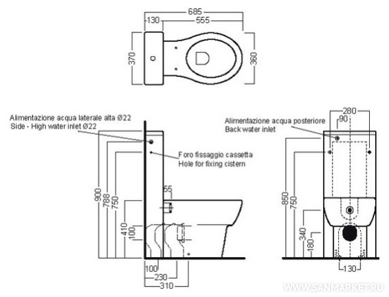 приставной (бачок в стене)