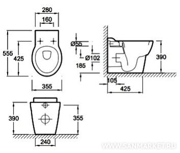 Данная модель имеет 2 точки фиксации с комплектом креплений к полу. Невидимое антибактериальное покрытие с частичками серебра, которым покрыты изделия, предотвращает появление бактерий.