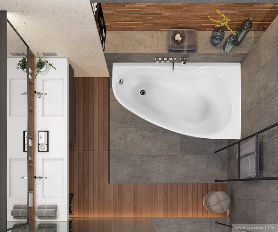 Угловая ванна Vagnerplast Avona выполнена в асимметричной форме, а потому при выборе модели необходимо правильно указать нужную ориентацию. Акрил, используемый в производстве Vagnerplast, нетоксичен, обладает антибактериальными свойствами, отличается высокой прочностью к механическим и химическим воздействиям, но при чистке ванны всё же следует избегать агрессивных методик с использованием абразивных средств.
