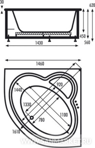 Vagnerplast Catalina 146х146 – акриловая ванна для пристенной угловой установки. Асимметричная форма делает модель универсальной – она вписывается и в левый, и в правый угол. В угловой части в конструкции предусмотрена специальная выемка, которая может служить удобным сиденьем или дополнительной поверхностью для хранения ванных принадлежностей.