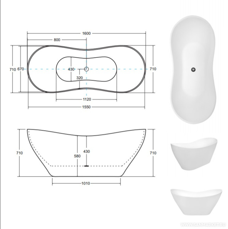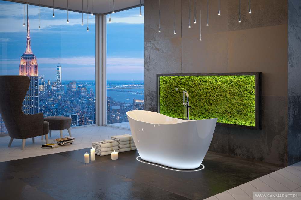 Ванна из литого мрамора BESCO VIYA 160. Благодаря тонким бортам ванны из каменной массы, внутренний размер и объем достаточной большой, поэтому лежать в ней удобно.